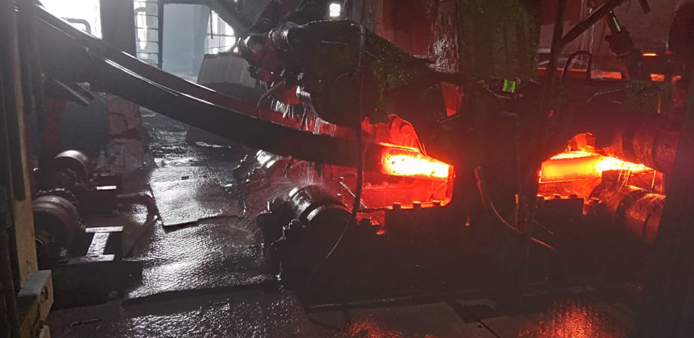 The liquid metal which is now transferred to the Tundish is then sent to the Copper Mould Assembly where it is cast into Square Billets